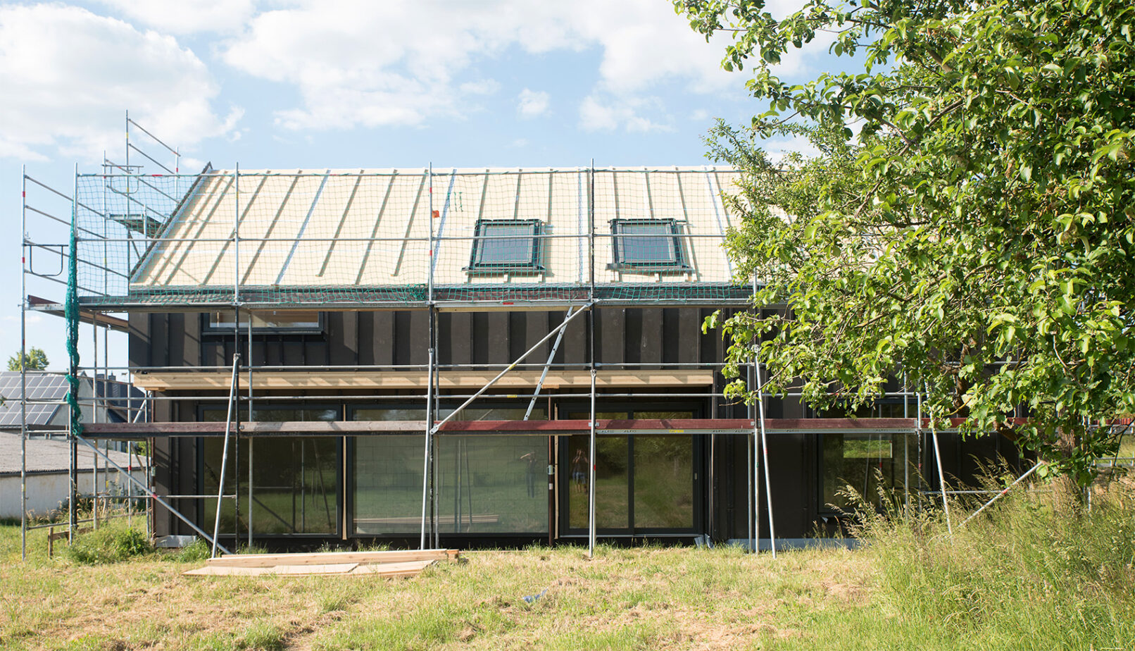Das Haus wurde als Hybrid aus Holzständerwerk, Massivholz und Mauerwerk konzipiert, bei dem jedes Material entsprechend seinen Vorteilen eingesetzt werden konnte.